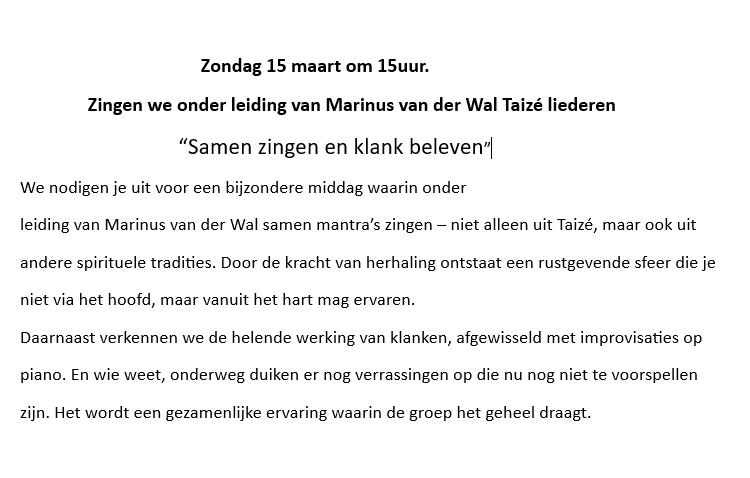 INSPIRATIEZONDAGEN met o.a. Muziek, lezing en kunst