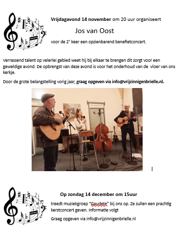 Van harte welkom. Bij de uitgang vragen we uw bijdrage.